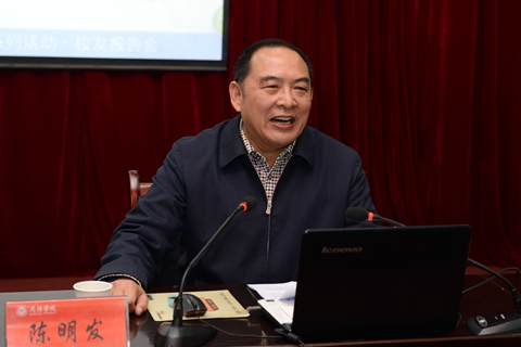 10月23日,我校物理學(xué)83屆校友、海南拍拍看網(wǎng)絡(luò)科技有限公司董事長、海南亞元防偽科技有限公司董事長陳明發(fā)受聘為我校兼職教授,并為師生作了題為《我的發(fā)明與創(chuàng)新之路》的報告。聘任儀式和報告會由副校長魏書堂主持。電信學(xué)院副院長李英為其頒發(fā)聘書,部分校友及電信學(xué)院學(xué)生參加了報告會。