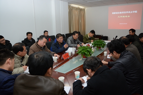 11月23日,我校召開創(chuàng)新創(chuàng)業(yè)教育改革試點(diǎn)學(xué)院建設(shè)工作推進(jìn)會(huì)。黨委副書記、副校長(zhǎng)范新會(huì)出席會(huì)議,對(duì)進(jìn)一步理清思路,明確創(chuàng)新創(chuàng)業(yè)教育改革試點(diǎn)學(xué)院建設(shè)方向提出了具體要求。范新會(huì)強(qiáng)調(diào),要把創(chuàng)新創(chuàng)業(yè)教育和教學(xué)科研工作緊密結(jié)合,著力培養(yǎng)學(xué)生的創(chuàng)新精神、創(chuàng)業(yè)意識(shí),通過試點(diǎn)學(xué)院建設(shè)全面推動(dòng)我校創(chuàng)新創(chuàng)業(yè)教育?;膶W(xué)院相關(guān)負(fù)責(zé)人及教師代表參加了推進(jìn)會(huì)。會(huì)議由教務(wù)處處長(zhǎng)李超主持。