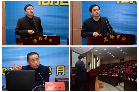 12月23日,我校隆重舉行以“創(chuàng)新驅(qū)動發(fā)展與創(chuàng)新型人才的培養(yǎng)”為主題的2016年學(xué)術(shù)年會。校領(lǐng)導(dǎo)范新會、王思懷、魏書堂、彭虎軍、劉寶盈出席年會。中國地質(zhì)大學(xué)(武漢)張江龍、羅林波教授,校紀(jì)委書記王思懷教授,西安市作協(xié)副主席、《美文》常務(wù)副主編穆濤教授,丹鳳縣人民政府副縣長、西安工業(yè)大學(xué)副教授曾凡奎博士在年會上做了學(xué)術(shù)報告。全校科級以上干部,中級職稱以上人員,全體教師,科技處、教務(wù)處、教學(xué)評估中心全體人員和學(xué)生代表參加了年會。