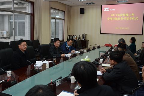 劉寶盈在講話中從經(jīng)費到賬、平臺建設(shè)、項目成果、學(xué)術(shù)活動等方面回顧總結(jié)了我校2016年科技工作情況。他指出,2017年要按照學(xué)校整體安排,在科研平臺、科研團隊、研究生聯(lián)合培養(yǎng)、高水平科研立項、科研經(jīng)費、重大科研成果和學(xué)術(shù)活動等方面取得新的突破。簽訂年度科技工作專項任務(wù)書是科技工作考核的重要環(huán)節(jié),各二級教學(xué)部門要積極落實項目任務(wù),以科研經(jīng)費為牽引,積極爭取重大科研項目的立項、完成及科技成果轉(zhuǎn)化,促進我??萍脊ぷ魉皆偕闲屡_階。