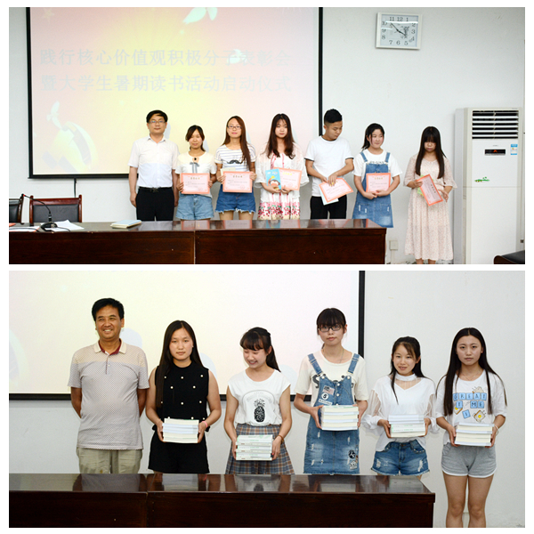 為貫徹落實習(xí)近平總書記關(guān)于全國哲學(xué)社會科學(xué)工作重要講話精神,宣傳弘揚社會主義核心價值觀,推動大學(xué)生閱讀經(jīng)典著作,學(xué)習(xí)社會科學(xué),堅定理想信念,6月29日,我校思政部舉辦“踐行核心價值觀積極分子表彰會暨大學(xué)生暑期讀書活動”啟動儀式。副校長劉勇出席表彰會。會議由思政部副主任李龍強主持。思政部教師為受表彰學(xué)生發(fā)放了證書和暑期閱讀書籍。