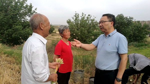 ——黨委書記龍治剛深入涇陽縣調(diào)研商麥系列小麥品種示范推廣。5月28日,校黨委書記龍治剛在黨委辦公室和秦嶺植物良種繁育中心負責人的陪同下,深入咸陽市涇陽縣橋底鎮(zhèn)、口鎮(zhèn),觀摩了商麥1619和商麥5226的生長和推廣情況。在口鎮(zhèn)碾窩村,龍治剛和正在收獲小麥的農(nóng)戶進行了親切交流。當聽到商麥5226品種好、面白好吃,在當?shù)厣钍軞g迎時,他倍感欣慰。龍治剛指出,服務社會發(fā)展,是我校科技工作的重要內(nèi)容。我校小麥品種能走出商洛、種上渭北旱塬,成績喜人、應予支持推廣。學校和種子企業(yè)技術人員要加強栽培技術指導,確保良種、良法、高產(chǎn),為陜西省糧食增產(chǎn)增收做出應有貢獻。