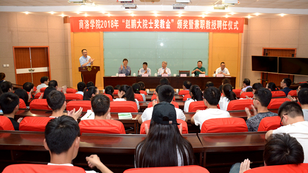 趙鵬大院士為獲得2018年“趙鵬大院士獎(jiǎng)教金”的三名教師元飛、喬成芳、曹寶月頒獎(jiǎng),并發(fā)表了情真意切的講話(huà)。他講到,他對(duì)商洛學(xué)院有著深厚的感情,每次到商洛學(xué)院都有回家的感覺(jué)。他對(duì)獲獎(jiǎng)教師表示祝賀,并指出,獲獎(jiǎng)教師為學(xué)校發(fā)展、相關(guān)學(xué)科發(fā)展、國(guó)家建設(shè)做出了貢獻(xiàn),在成才的道路上又邁進(jìn)了一大步,但除了他們?nèi)恢?,還有很多科研工作者奮戰(zhàn)在各自的領(lǐng)域,并取得了很多成就。他指出,我們目前在各學(xué)科的研究領(lǐng)域都取得了很多重大成果,但距離將我國(guó)建設(shè)成為世界科技強(qiáng)國(guó)這一目標(biāo)依然任重道遠(yuǎn),我們要堅(jiān)持創(chuàng)新,要將重大科技成果牢牢把握在自己手中,不僅要做一個(gè)“論文大國(guó)”,還要將自己的知識(shí)產(chǎn)業(yè)化,形成生產(chǎn)力,服務(wù)于社會(huì),服務(wù)于人民,要戒驕戒躁、再接再厲,做出彩事、做平凡人,為把我國(guó)建設(shè)成為科技強(qiáng)國(guó)而不懈奮斗,為學(xué)校發(fā)展和民族復(fù)興做出更大的貢獻(xiàn)。