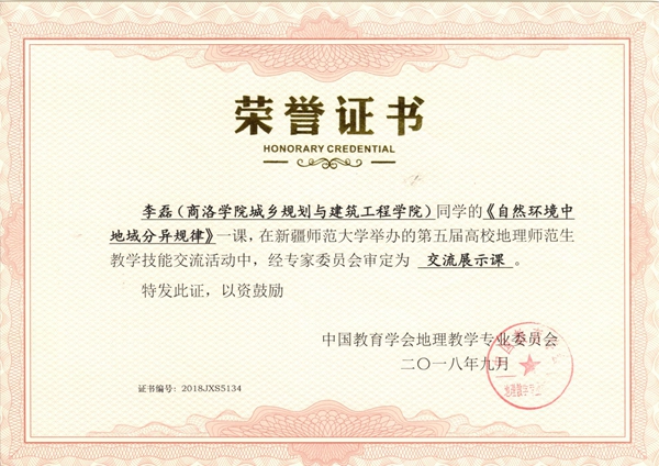 9月28—30日,由中國教育學(xué)會(huì)地理教學(xué)專業(yè)委員會(huì)主辦,新疆師范大學(xué)地理科學(xué)與旅游學(xué)院、華東師范大學(xué)地理科學(xué)學(xué)院聯(lián)合承辦的“2018年地理師范生教學(xué)技能大賽”在新疆維吾爾自治區(qū)烏魯木齊市成功舉辦。來自華東師范大學(xué)、東北師范大學(xué)、華中師范大學(xué)、南京師范大學(xué)、陜西師范大學(xué)等70多所高校地理科學(xué)(師范)專業(yè)的140余名選手參加了大賽。我校選派參賽的城鄉(xiāng)規(guī)劃與建筑工程學(xué)院地理科學(xué)專業(yè)2015級(jí)學(xué)生葉青青、李磊講授課程均被審定為交流展示課(三等獎(jiǎng))。