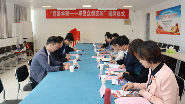劉勇代表學(xué)校與王樂忠共同為眾創(chuàng)空間揭牌,并為大家介紹了我校的基本情況和我校校企合作工作開展情況。他指出,商洛學(xué)院是一所地方應(yīng)用型本科院校,產(chǎn)教融合是應(yīng)用型發(fā)展的必由之路,學(xué)校高度重視結(jié)合專業(yè)特色優(yōu)勢(shì)與粵嵌科技開展的各項(xiàng)合作,希望電信學(xué)院和經(jīng)管學(xué)院以校企共建眾創(chuàng)空間為平臺(tái),認(rèn)真謀劃、積極實(shí)踐,在雙師型教師培養(yǎng)、理論和實(shí)踐課程體系改革、實(shí)習(xí)實(shí)訓(xùn)、創(chuàng)新創(chuàng)業(yè)競賽指導(dǎo)等方面積極開展工作,著力探索產(chǎn)教融合人才培養(yǎng)新模式,努力提高應(yīng)用型人才培養(yǎng)質(zhì)量。