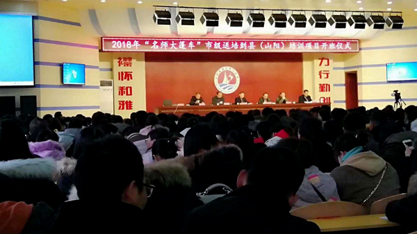 11月15日,由我校承擔(dān)的2018年“名師大篷車”市級送培到縣項目分別在柞水縣和山陽縣舉行了開班典禮,兩縣科教局相關(guān)負(fù)責(zé)人及我校繼續(xù)教育學(xué)院負(fù)責(zé)人出席開班典禮。開班典禮后,我校紀(jì)委書記王思懷教授、圖書館館長楊增強(qiáng)教授分別為兩縣參訓(xùn)教師作了首場師德報告。柞水縣500名中小學(xué)教師、山陽縣600名中小學(xué)教師參加了本次培訓(xùn)。