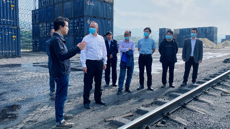 郭瑾一行在商洛陸港實業(yè)集團(tuán)有限公司總經(jīng)理譚震、集團(tuán)黨支部書記李開旺、副總經(jīng)理張同謙等人陪同下參觀了公司貨場,觀看了公司形象宣傳片。