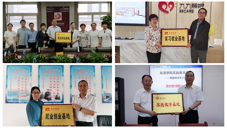劉寶盈代表學(xué)校與商南城關(guān)小學(xué)、旭初農(nóng)林開發(fā)有限公司簽署合作共建實(shí)踐教學(xué)基地和大學(xué)生就業(yè)創(chuàng)業(yè)基地協(xié)議,并向商南城關(guān)小學(xué)、旭初農(nóng)林開發(fā)有限公司、長(zhǎng)安醫(yī)院、西安高新醫(yī)院合作共建大學(xué)生就業(yè)創(chuàng)業(yè)基地授牌。魯綿茸代表健康管理學(xué)院向九九康復(fù)醫(yī)療中心合作共建大學(xué)生就業(yè)實(shí)習(xí)基地授牌。