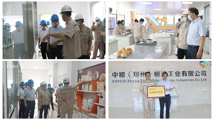 在河南工業(yè)大學(xué),王新軍一行參觀考察了糧食儲運國家工程實驗室、糧食儲運與安全教育部工程研究中心、河南省重點學(xué)科實驗室儲藏物昆蟲研究室、糧油食品學(xué)院校企聯(lián)合實驗室、全國糧食行業(yè)(鄭州)教育培訓(xùn)基地、國家專業(yè)技術(shù)人員繼續(xù)教育基地。在中糧(鄭州)糧油工業(yè)有限公司,王新軍一行參觀了公司面粉加工生產(chǎn)線、食品研發(fā)實驗室,并為學(xué)校與公司共建的實踐教學(xué)基地授牌。在河南佳和康生物食品科技有限公司,王新軍代表學(xué)校與企業(yè)簽署了校外實踐教學(xué)基地協(xié)議書并為基地授牌。通過座談交流、實地參觀等方式,王新軍一行圍繞糧油食品相關(guān)行業(yè)發(fā)展、人才培養(yǎng)、實驗實訓(xùn)基地(研究中心)建設(shè)、培訓(xùn)基地建設(shè)、推動產(chǎn)教深度融合等方面與合作企事業(yè)單位進行了深入交流。