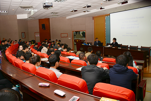在講座中,孫志發(fā)介紹了奧塔哥大學(xué)的基本情況,并就新西蘭大學(xué)與中國大學(xué)的不同之處進(jìn)行了對比。他指出,新西蘭的學(xué)位體系中,本科教育只需3年便可獲得學(xué)位,獲得優(yōu)等學(xué)位的學(xué)生可以直接參加工作,獲得一等優(yōu)等學(xué)位的學(xué)生,可再讀一年直接攻讀博士學(xué)位,拿到優(yōu)秀獎學(xué)金;沒有考上大學(xué)的學(xué)生可以在21歲時進(jìn)入一些大學(xué)的普通專業(yè),在期末后達(dá)到相應(yīng)學(xué)分即可獲得學(xué)位;國外留學(xué)生若要進(jìn)入新西蘭境內(nèi)的大學(xué)繼續(xù)學(xué)習(xí)深造,則需要有專業(yè)人士較為權(quán)威的推薦信、優(yōu)異的成績,以及在正規(guī)刊物上發(fā)表的文章或論文;新西蘭沒有專門的師范大學(xué),若要從事教師行業(yè),須到教育學(xué)院學(xué)習(xí)一年即可。