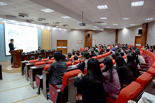 宣講會(huì)上,John Lee介紹了克萊蒙特大學(xué)的地理位置、環(huán)境、專業(yè)設(shè)置、招生需求以及就業(yè)前景。他表示,克萊蒙特大學(xué)接收研究生入學(xué)申請(qǐng),研究生最低入學(xué)要求雅思6.0分、托福75分,即可申請(qǐng)直錄??巳R蒙特大學(xué)每年分春、夏、秋3季招生,春季招生為1月份,夏季招生為5月份,秋季招生為9月份。我校百余名出國(guó)留學(xué)意向的學(xué)生聽取了報(bào)告。