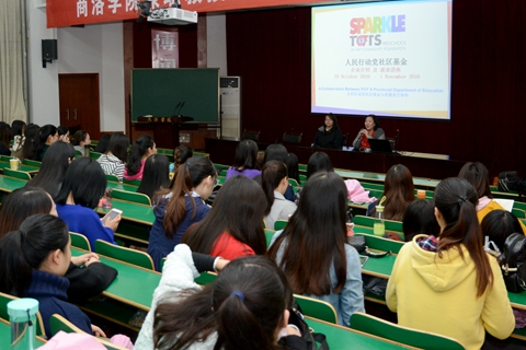 座談結(jié)束后,梁瑩一行舉辦了宣講會(huì),向我校2014級(jí)學(xué)前教育專業(yè)學(xué)生介紹了新加坡的風(fēng)土人情和生活習(xí)慣,人民行動(dòng)黨社區(qū)基金幼兒園的基本情況、用人需求、工作環(huán)境、收入待遇,以及赴新加坡申請(qǐng)求職的辦理程序、材料準(zhǔn)備和工作生活等問題。孫雯莉鼓勵(lì)我校熱愛教育事業(yè)、吃苦耐勞、善于創(chuàng)新、具有使命感的學(xué)生前往新加坡從事幼教工作,體驗(yàn)新加坡的多元文化。