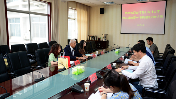 范新會(huì)首先就我校辦學(xué)定位、專業(yè)設(shè)置、師資隊(duì)伍及學(xué)生出國(guó)(境)等基本情況作了介紹。他指出,兩岸同胞同根同源、同文同宗,在經(jīng)濟(jì)全球化深入發(fā)展的今天,兩岸聯(lián)系日益密切。作為兩岸高等學(xué)府,雙方要加強(qiáng)文化交流,共同傳承中華文化優(yōu)秀傳統(tǒng),建設(shè)共同精神家園。他表示,我校今后將進(jìn)一步創(chuàng)造條件,推動(dòng)師生互訪交流,深入推進(jìn)與朝陽科技大學(xué)的合作,實(shí)現(xiàn)兩?;ダp贏。