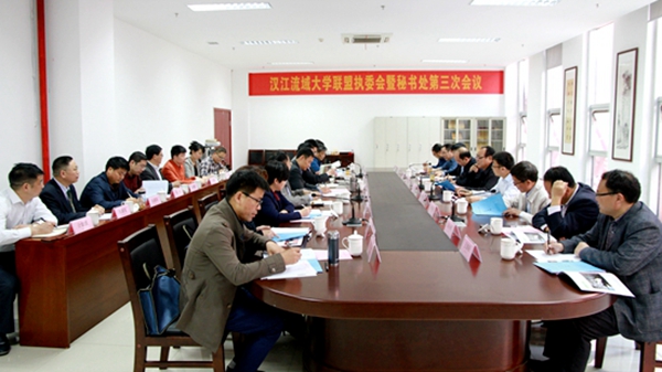 4月3日,漢江流域大學(xué)聯(lián)盟執(zhí)委會(huì)暨秘書處第三次會(huì)議在湖北汽車工業(yè)學(xué)院召開。漢江流域鄂陜?cè)ト〉?1所聯(lián)盟高校執(zhí)委會(huì)委員、聯(lián)盟高校秘書處成員以及相關(guān)部門負(fù)責(zé)人參加了會(huì)議。我校副校長(zhǎng)劉勇和國(guó)際交流處負(fù)責(zé)人參加會(huì)議。