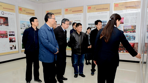 在龍治剛、范新會(huì)的陪同下,陳平社、曹慶年一行考察了我校校園環(huán)境,實(shí)地察看了學(xué)校特色展廳和重點(diǎn)實(shí)驗(yàn)室。隨后,龍治剛主持召開座談會(huì),雙方就應(yīng)用型本科院校建設(shè)、本科教學(xué)工作合格評(píng)估等內(nèi)容進(jìn)行了座談交流。