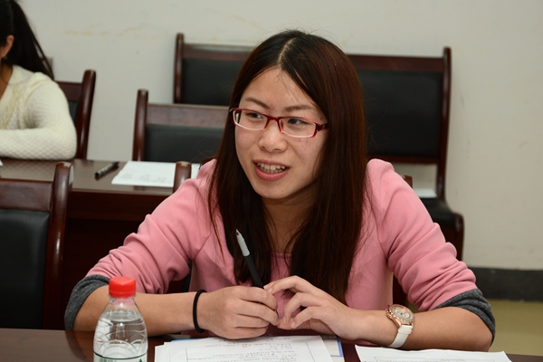 交流中,我校2011年青年教師教學(xué)技能競賽第一名獲得者許薇,2015年新入職青年教師鐘思遠;2012年青年教師教學(xué)技能競賽第一名獲得者趙玉霞,2015年新入職青年教師曹寶月分別作了發(fā)言。
