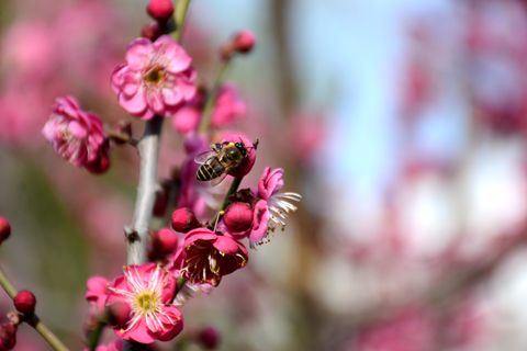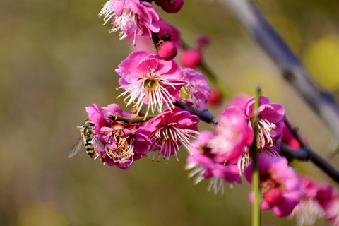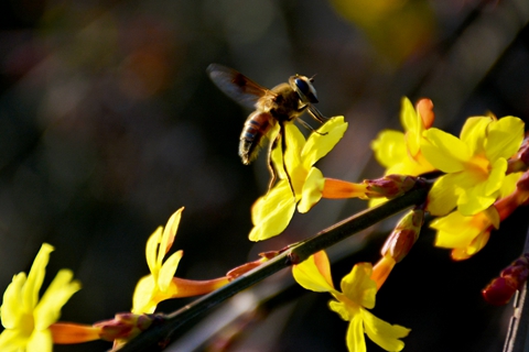 春風(fēng)送暖,校園里迎春花、桃花再次綻放,勤勞的蜜蜂忙著采蜜,小鳥處處啼叫,一派生機盎然的景象。