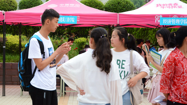 范新會(huì)仔細(xì)詢(xún)問(wèn)了招生咨詢(xún)情況,并囑咐工作人員和學(xué)生志愿者做好服務(wù)工作。我校國(guó)際合作與交流處及各二級(jí)學(xué)院教師在咨詢(xún)會(huì)現(xiàn)場(chǎng),耐心解答家長(zhǎng)和考生們的詢(xún)問(wèn),對(duì)我校2019年招生政策、招生計(jì)劃、專(zhuān)業(yè)特色、考研就業(yè)和學(xué)生對(duì)外交流等情況進(jìn)行了詳細(xì)介紹。
