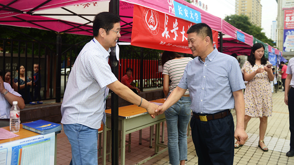 6月26日,我校舉辦了2019年校園開(kāi)放日暨陜西高校招生咨詢(xún)會(huì)。我校與浙江大學(xué)、西安交通大學(xué)、西北工業(yè)大學(xué)、西北農(nóng)林科技大學(xué)、西北大學(xué)、長(zhǎng)安大學(xué)、西安郵電大學(xué)、西交利物浦大學(xué)等30余所省內(nèi)外高校現(xiàn)場(chǎng)為廣大高考考生及家長(zhǎng)提供招考咨詢(xún)服務(wù)。校長(zhǎng)范新會(huì)到現(xiàn)場(chǎng)看望慰問(wèn)各校工作人員并與考生及家長(zhǎng)進(jìn)行了親切交談。