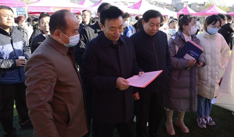 為切實做好學(xué)生就業(yè)工作,全力促進(jìn)我校2022屆畢業(yè)生高質(zhì)量就業(yè),12月4日,由陜西省教育廳主辦,商洛市人力資源和社會保障局、商洛市人才交流服務(wù)中心協(xié)辦,我校承辦的2022屆畢業(yè)生冬季綜合類校園招聘會在北新街體育場舉辦。校黨委副書記彭虎軍、商洛市人力資源和社會保障局相關(guān)負(fù)責(zé)人深入招聘會現(xiàn)場指導(dǎo)工作。招聘會全程采取“錯時分區(qū)”入場,嚴(yán)格落實常態(tài)化疫情防控措施。