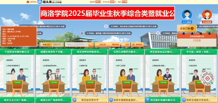 為充分做好我校2025屆畢業(yè)生就業(yè)工作,充分搭建用人單位和畢業(yè)生交流平臺,確保我校畢業(yè)生更加充分、更高質(zhì)量就業(yè),12月25日,由省教育廳指導(dǎo)、省就業(yè)留學(xué)中心支持,我校和商洛市人社局聯(lián)合主辦,我校就業(yè)中心和商洛市人才中心承辦的2025屆畢業(yè)生冬季綜合類暨人力資源市場高校畢業(yè)生就業(yè)服務(wù)專項(xiàng)行動網(wǎng)絡(luò)視頻招聘會依托貓頭英云人才市場順利舉辦。