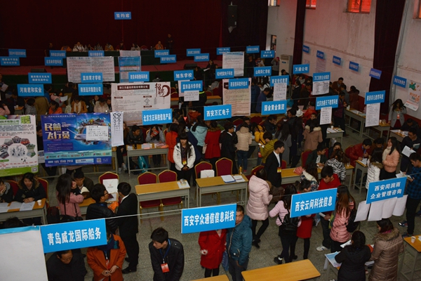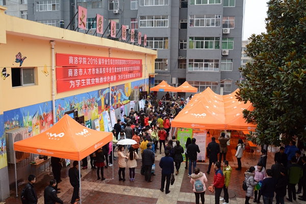 為切實做好2016屆畢業(yè)生的就業(yè)工作,有效搭建畢業(yè)生與用人單位雙向選擇平臺,12月13日,我校舉辦了2016屆畢業(yè)生綜合類校園招聘會。副校長魏書堂、黨委副書記彭虎軍,商洛市人力資源和社會保障局副局長衛(wèi)華山、商洛市人才服務中心主任舒建宏親臨招聘會,了解招聘單位人才需求和畢業(yè)生應聘情況,宣講高校畢業(yè)生就業(yè)創(chuàng)業(yè)新政策。相關(guān)職能部門負責人、各二級學院黨總支書記及畢業(yè)班輔導員全程參會,現(xiàn)場指導學生,服務招聘單位。我校及省內(nèi)各高校應往屆畢業(yè)生2600多人參加了招聘會,畢業(yè)生向用人單位投遞簡歷及初步達成就業(yè)意向共1683人次。