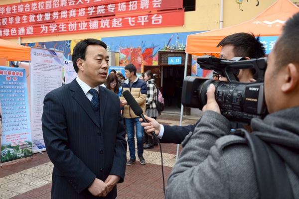 彭虎軍在招聘會期間接受了電視臺專訪。他指出,我校一貫重視大學生就業(yè)工作,通過落實完善就業(yè)創(chuàng)業(yè)政策,加大資金投入,積極促進大學生自主創(chuàng)業(yè)。不斷加強大學生就業(yè)服務和指導,以舉辦就業(yè)形勢與政策報告會、邀請就業(yè)創(chuàng)業(yè)專家進校園等方式宣傳大學生就業(yè)政策,促進大學生就業(yè)觀念的轉(zhuǎn)變。通過舉辦各類招聘會促進大學生就業(yè),近期連續(xù)舉辦了4場招聘會,提供就業(yè)崗位6000多個。他表示,有黨和政府促進大學生就業(yè)的良好政策,有社會各界的大力支持,有廣大學生的積極努力,我校畢業(yè)生一定能夠?qū)崿F(xiàn)更充分更高質(zhì)量的就業(yè)創(chuàng)業(yè)。