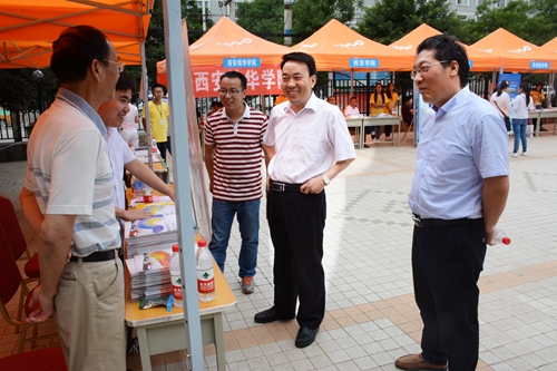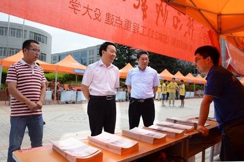 校黨委副書記彭虎軍在教務(wù)處處長(zhǎng)李超的陪同下,來到活動(dòng)現(xiàn)場(chǎng)檢查指導(dǎo)工作,親切看望了參加咨詢會(huì)的各高校工作人員,并囑咐我校工作人員和學(xué)生志愿者盡心盡力做好服務(wù)。