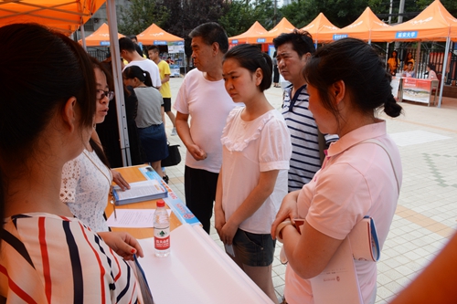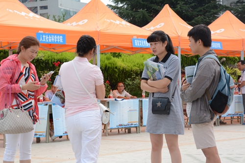 在活動(dòng)現(xiàn)場(chǎng),家長(zhǎng)及考生們紛紛走到自己心儀的學(xué)校展臺(tái)前進(jìn)行咨詢,工作人員耐心、細(xì)致地向考生和家長(zhǎng)詳細(xì)介紹本校的錄取批次、發(fā)展概況、學(xué)科專業(yè)、辦學(xué)特色、人才培養(yǎng)、就業(yè)狀況、學(xué)生國際交流項(xiàng)目及2016年招生情況,并針對(duì)考生個(gè)人情況給予了報(bào)考指導(dǎo)。我校招生就業(yè)處、發(fā)展規(guī)劃與合作交流處以及各二級(jí)學(xué)院工作人員現(xiàn)場(chǎng)解答了家長(zhǎng)和考生們關(guān)心的我校2016年招生政策、招生專業(yè)、招生計(jì)劃、專業(yè)特色和學(xué)生國際交流等情況。
