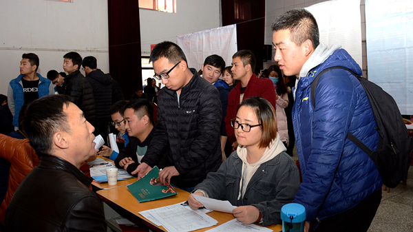 為促進2018屆畢業(yè)生就業(yè)數(shù)量和質(zhì)量的雙提升,11月25日,我校舉辦2017年冬季新疆生產(chǎn)建設(shè)兵團校園專場招聘會。我校及商洛職業(yè)技術(shù)學院等多所省內(nèi)外高校畢業(yè)生前來應聘。校黨委副書記彭虎軍現(xiàn)場指導招聘工作。各二級學院黨總支負責人、相關(guān)職能部門負責人及畢業(yè)班輔導員全程參與招聘會的服務(wù)工作。