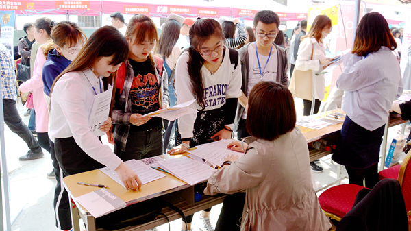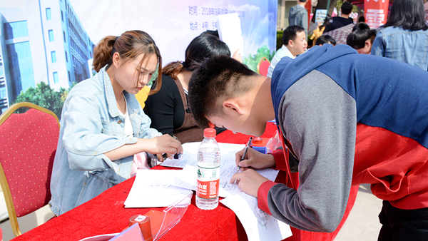 招聘會(huì)上,來(lái)自江蘇、新疆、北京、上海、山西等地的161家省內(nèi)外企事業(yè)單位、學(xué)校及培訓(xùn)機(jī)構(gòu)進(jìn)行了現(xiàn)場(chǎng)洽談?wù)衅浮8饔萌藛挝惶峁┑木蜆I(yè)崗位涉及基礎(chǔ)教育、應(yīng)用化工、生物醫(yī)藥、工程管理、電子技術(shù)、財(cái)務(wù)會(huì)計(jì)等諸多行業(yè)領(lǐng)域,共計(jì)8800余個(gè)招聘崗位,基本覆蓋我校畢業(yè)生所學(xué)專業(yè)。在前期的大力宣傳和有效組織下,我校應(yīng)往屆畢業(yè)生及來(lái)自省內(nèi)7所高校的畢業(yè)生共計(jì)3000多人參加了招聘會(huì)。