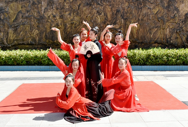 ——舉辦文藝匯演,展現(xiàn)青春風采。在大學生活動中心舉辦“千古華裳承絕唱,禮樂千年訴情殤”文藝晚會,通過表演舞蹈《清平調(diào)》、短劇《赤伶》、舞臺劇《長門怨》、歌曲《走馬》等各類形式的節(jié)目,帶領(lǐng)師生們追憶百年風雨歷程,重溫革命先輩于披荊斬棘中開辟天地,在攻堅克難中創(chuàng)造業(yè)績的光輝歷程;在體育場舉辦“相約五月,棍武青春”晚會,武術(shù)《軍武匯》以扎實的腿功和流暢的招式,深刻詮釋了當代青年勇于擔當、時不我待的報國情懷,展現(xiàn)了我校學生朝氣蓬勃、不斷進取的精神風貌;在玉蘭廣場舉辦“舞法停止”快閃show活動,動感的旋律、飛揚的舞步吸引了大批老師和同學駐足圍觀,同學們用炫酷的造型,整齊的步伐,超高難度的地板炫技結(jié)合音樂節(jié)奏譜寫出新時代青年無愧于前輩、無愧于時代、無愧于人民的壯麗華章。