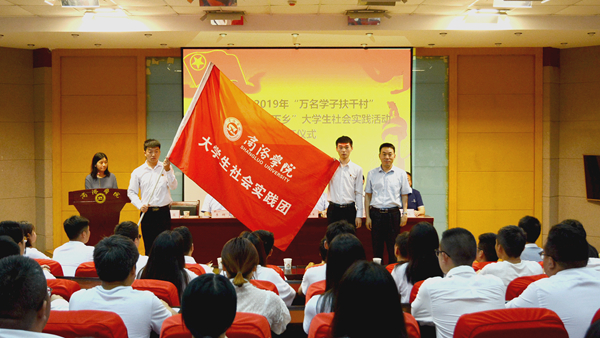 7月8日,我校2019年“萬(wàn)名學(xué)子扶千村”脫貧攻堅(jiān)暨“三下鄉(xiāng)”大學(xué)生社會(huì)實(shí)踐活動(dòng)出征儀式舉行。校黨委副書記彭虎軍出席儀式并為社會(huì)實(shí)踐團(tuán)隊(duì)代表授旗,宣傳部、學(xué)工部、團(tuán)委、教務(wù)處、科技處負(fù)責(zé)人及各二級(jí)學(xué)院團(tuán)總支書記、學(xué)生代表共同參加了出征儀式。儀式由團(tuán)委副書記許薇主持。