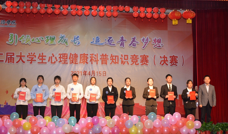 4月15日下午,我校第二屆大學(xué)生心理健康科普知識(shí)競(jìng)賽在大學(xué)生活動(dòng)中心舉辦決賽。校黨委副書記彭虎軍蒞臨現(xiàn)場(chǎng)并為獲獎(jiǎng)人員頒獎(jiǎng)。學(xué)生處負(fù)責(zé)人,各二級(jí)學(xué)院黨總支書記、學(xué)工辦主任、全體輔導(dǎo)員以及學(xué)生代表共400余人觀看了比賽。