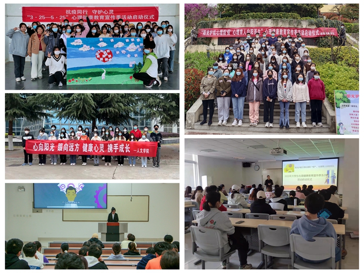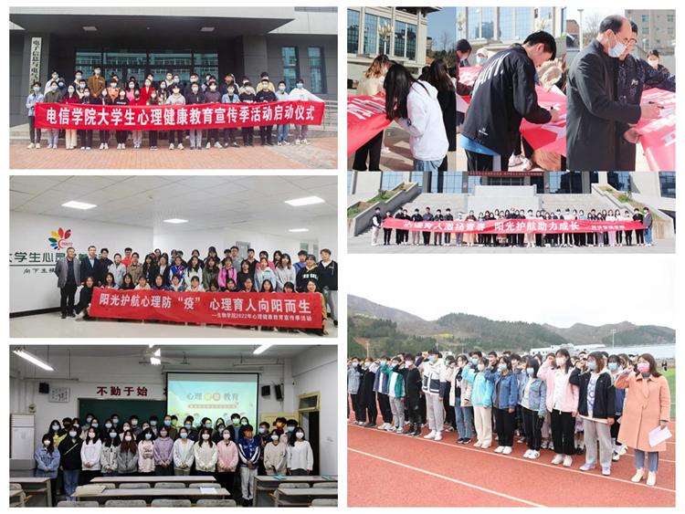 各二級學(xué)院結(jié)合院部實(shí)際,把握主題,精心策劃并陸續(xù)舉行了各自院部的心理健康教育宣傳季啟動儀式。其中,馬克思主義學(xué)院組織了40名學(xué)生代表在操場開展了以“抗疫同行守護(hù)心靈”為主題的團(tuán)體輔導(dǎo)活動,引導(dǎo)學(xué)生在體驗(yàn)活動中發(fā)現(xiàn)自己的閃光點(diǎn)、以更加積極健康的心態(tài)迎接未來的挑戰(zhàn);人文學(xué)院開展“3·25大學(xué)生心理健康日”交流會,現(xiàn)場準(zhǔn)備了粉色問題箱、綠色回答箱、藍(lán)色宣泄箱、黃色祝福箱,讓同學(xué)們對自己和身邊人坦誠,增進(jìn)自我了解,釋放心情,驅(qū)散煩惱;數(shù)計學(xué)院組織學(xué)生觀看心理育人微視頻,并圍繞“如何應(yīng)對壓力”的話題讓學(xué)生展開討論,旨在讓學(xué)生尋找到適合自己應(yīng)對壓力的方式,及時為自己解壓,保持良好的心理狀態(tài)。建工學(xué)院組織學(xué)生觀看了“面對疫情,我們?nèi)绾芜M(jìn)行心理調(diào)適?”的心理健康講座視頻,讓學(xué)生覺察自己因疫情帶來的不良情緒及其調(diào)適方法;經(jīng)管學(xué)院開展了“愛心理助力團(tuán)”心理委員專題培訓(xùn),了解學(xué)生在校園加強(qiáng)疫情管控期間的心理狀況,引導(dǎo)學(xué)生多關(guān)注心理健康方面知識,保持積極健康心態(tài);藝術(shù)學(xué)院召集全院學(xué)生干部,并由黨總支書記黃新春為學(xué)生干部們講述心理危機(jī)的識別與干預(yù)的基本要領(lǐng),進(jìn)一步夯實(shí)了學(xué)院危機(jī)干預(yù)四級網(wǎng)絡(luò)機(jī)制;電信學(xué)院、化材學(xué)院、生物學(xué)院和健康學(xué)院等開展了以“陽光護(hù)航”為主題的啟動大會,會上安排部署心理季活動,介紹了心理健康教育的意義及重要性,組織學(xué)生進(jìn)行“325善愛我”的宣誓并在橫幅上簽字,旨在號召關(guān)注心理健康,不負(fù)青春韶華。