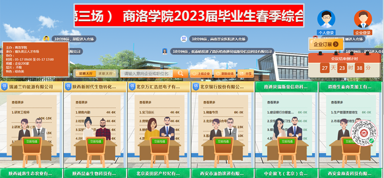 為切實做好我校2023屆畢業(yè)生就業(yè)工作,促進畢業(yè)生更加充分、更高質(zhì)量就業(yè),4月19日,由省教育廳主辦,商洛市人社局、商洛市人才中心協(xié)辦,我校依托貓頭英云人才市場成功舉辦了2023屆畢業(yè)生春季綜合類網(wǎng)絡(luò)視頻招聘會(第二場)。