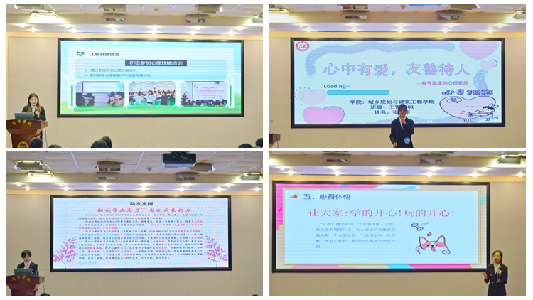 為進(jìn)一步做好心理健康教育工作,充分發(fā)揮班級(jí)心理委員在朋輩支持體系中的作用,不斷激發(fā)心理委員的工作熱情,12月12日,我校舉辦2024年“校園十佳心理委員”評(píng)選活動(dòng)。學(xué)生處負(fù)責(zé)人、相關(guān)指導(dǎo)教師、各學(xué)院班級(jí)心理委員代表等120余人現(xiàn)場(chǎng)觀摩。