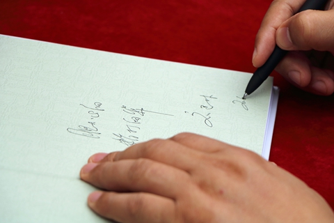 在莘子苑入口,畢業(yè)生排隊(duì)熱烈歡迎劉建林校長。劉建林現(xiàn)場向畢業(yè)生贈送了自己編著的《跨流域調(diào)水工程補(bǔ)償機(jī)制研究——以南水北調(diào)(中線)工程商洛水源為例》一書,并在書上題寫了“膽大心細(xì),精打細(xì)算”的贈語及簽名。簽名贈書現(xiàn)場人頭攢動,畢業(yè)生們圍繞在劉建林身邊,爭先恐后領(lǐng)取贈書。拿到劉校長親筆簽名的書籍,同學(xué)們臉上流露出了激動和幸福的表情。