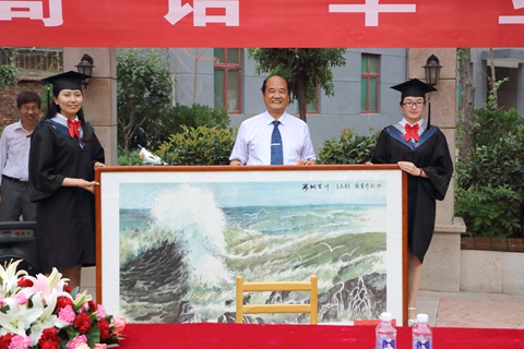 簽名贈書儀式結(jié)束后,建工學(xué)院畢業(yè)生為了表達(dá)對母校的感謝之情,向母校贈送了學(xué)生徐煥章所作的國畫《海納百川》作為紀(jì)念。
