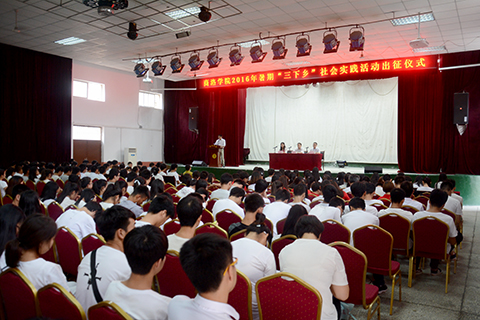 校團(tuán)委書記蔣正治在發(fā)言中表示,我校2016年大學(xué)生暑期“三下鄉(xiāng)”社會(huì)實(shí)踐活動(dòng)圍繞“青春建功十三五﹒攜手共筑中國夢”這一主題,組織大學(xué)生利用暑期時(shí)間走進(jìn)鄉(xiāng)鎮(zhèn)、走進(jìn)農(nóng)村、走進(jìn)企業(yè)、走向社會(huì),在社會(huì)實(shí)踐中經(jīng)風(fēng)雨、見世面、受教育、長才干,在基層鍛煉中增強(qiáng)創(chuàng)業(yè)意識、提升創(chuàng)新能力,在服務(wù)社會(huì)中培養(yǎng)應(yīng)用型人才。