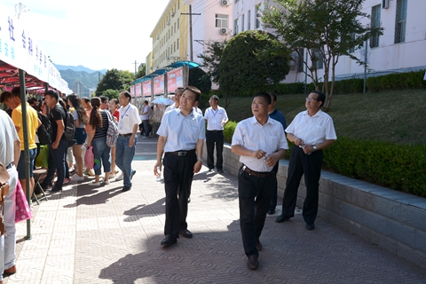 在黨政辦公室、學(xué)生處、招生就業(yè)處、保衛(wèi)處、后勤保障處等相關(guān)職能部門負(fù)責(zé)人的陪同下,范新會一行深入新生接待處、繳費處、戶籍辦理處、軍訓(xùn)服裝發(fā)放處、學(xué)生公寓、銀行卡與通信卡辦理處等場點,詳細(xì)檢查了各個場點迎新工作部署與開展情況。經(jīng)過檢查,校領(lǐng)導(dǎo)對接待新生的各項準(zhǔn)備工作表示滿意,并要求各單位通力合作,積極主動、熱情周到、扎實細(xì)致做好服務(wù)工作,讓新生及家長能迅速、便捷、舒心地辦理入校手續(xù),感受到學(xué)校大家庭的溫暖。針對迎新期間校內(nèi)交通調(diào)度、衛(wèi)生清理、志愿者培訓(xùn)等工作,校領(lǐng)導(dǎo)也提出了具體要求。