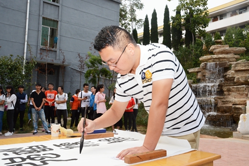 倚著小橋,伴著流水,詩朗誦《中秋的月亮》拉開了吟誦會(huì)的序幕,吟誦者聲情并茂,觀眾們稱贊連連。三筆字書法展演將活動(dòng)推向高潮,黨博博用小篆書寫的“自強(qiáng)卓越,和諧儒雅”,大氣磅礴,突顯文傳院的精神氣質(zhì)。隨著悠揚(yáng)的音樂想起,飽含深情的吟誦《中秋之夜》《沒有月亮的中秋》《中秋月思》等詩詞,讓聽者如癡如醉。師生在吟誦詩歌、互動(dòng)游戲的快樂氛圍中共話佳節(jié)。