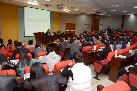 為深入學習和理解黨的十八屆六中全會精神,11月14日,左曉民教授應邀來到“青年大講堂”,以《旗幟·規(guī)矩·生態(tài)·優(yōu)勢》為題,為我校青年學生作了十八屆六中全會精神學習報告。紀委書記王思懷出席報告會。校團委、各二級學院黨總支、各團總支負責人參加報告會?!扒囫R工程”全體學員、學生會主要干部聽取了報告。報告會由團委書記蔣正治主持。