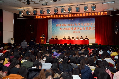 12月8日,我校隆重舉行2016年學(xué)生表彰大會暨社會捐資獎助學(xué)金發(fā)放儀式。校黨委副書記、副校長范新會,副校長魏書堂、黨委副書記彭虎軍,陜西省電力公司外聯(lián)部副主任李亞琳、商洛供電局黨委書記陳飛、中國聯(lián)通商洛分公司總經(jīng)理古濤、商洛市郵政分公司副總經(jīng)理張勛、中國電信商洛分公司副總經(jīng)理胡萬社,陜西森弗天然制品有限公司董事長、總經(jīng)理金新康等出席大會。大會由彭虎軍主持。