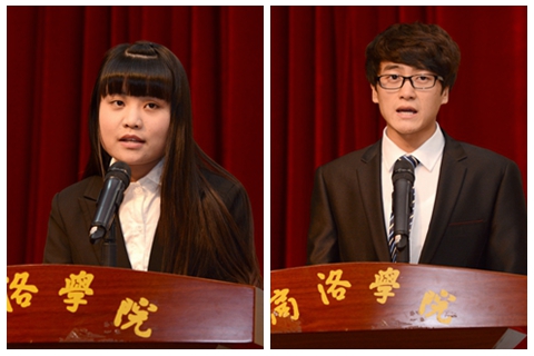 生物學(xué)院學(xué)生侯瑤、經(jīng)管學(xué)院學(xué)生趙文輝分別代表受表彰的先進(jìn)個人和受資助學(xué)生作了大會發(fā)言。