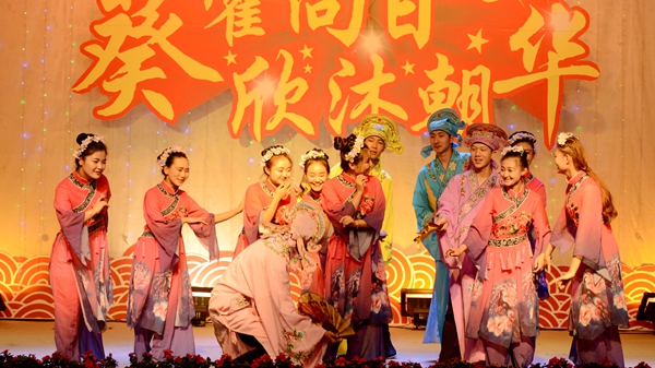 我校藝術(shù)學(xué)院教師潘勛、蘇軍、王娜娜、王怡等帶來(lái)的歌伴舞《陽(yáng)光路上》把整場(chǎng)晚會(huì)推向高潮。晚會(huì)在觀眾意猶未盡的贊美聲中完美謝幕。
