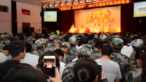 9月19日晚,以”葵藿向日、欣沐朝華”為主題的2017年迎新晚會(huì)在大學(xué)生活動(dòng)中心隆重上演。校領(lǐng)導(dǎo)龍治剛、范新會(huì)、魏書(shū)堂、劉寶盈、劉勇同師生一同觀看了晚會(huì)。晚會(huì)由校團(tuán)委、學(xué)工部主辦。