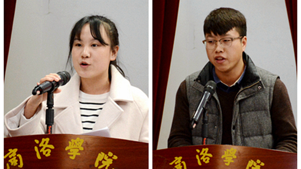 建工學(xué)院魏爭(zhēng)強(qiáng)同學(xué)、馬克思主義學(xué)院林何夢(mèng)同學(xué)分別代表受表彰的先進(jìn)個(gè)人和受資助學(xué)生作了發(fā)言。