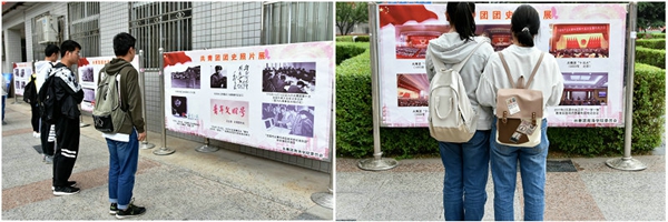 ——舉辦了以“回顧歷史足跡傳承五四精神”為主題的共青團(tuán)史圖片展。展覽以歷史圖片加文字說明為主,力求讓觀展者更好的重溫和感受革命波瀾壯闊的歷程。