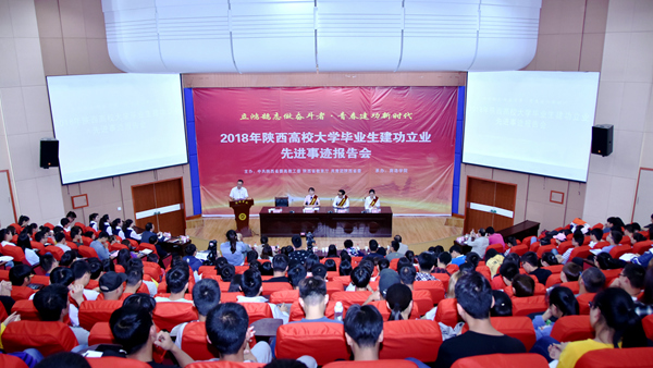 5月23日,由省委高教工委、省教育廳、團(tuán)省委主辦,我校承辦的“立鴻鵠志 做奮斗者·青春建功新時(shí)代”2018年陜西高校大學(xué)畢業(yè)生建功立業(yè)先進(jìn)事跡報(bào)告會(huì)在我校舉行,3名報(bào)告團(tuán)成員走進(jìn)我校,與大家分享了他們的奮斗歷程和青春故事。宣傳部、學(xué)工部相關(guān)負(fù)責(zé)人,各二級學(xué)院黨總支書記、團(tuán)總支書記、學(xué)生代表共500余人參加報(bào)告會(huì)。報(bào)告會(huì)由團(tuán)委書記蔣正治主持。